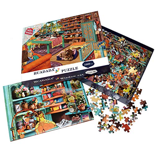 Puzzle 1000 pezzi, puzzle per adulti, impossible puzzle,puzzle da gioco colorato con scritta in lingua inglese -Windowsill Cat.