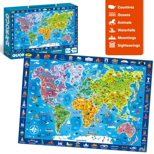 PUZZLE DELLA MAPPA DEL MONDO: i puzzle da 100 pezzi per bambini aiutano a imparare gli oceani, i continenti, i loro animali e i costumi di diverse nazionalità da tutto il mondo;