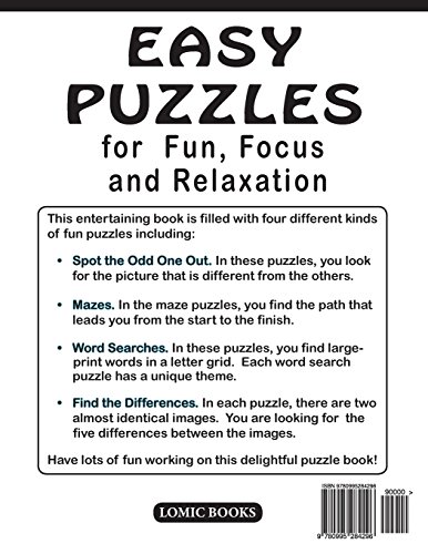 Easy Puzzles for Fun, Focus and Relaxation: Includes Spot the Odd One Out, Find the Differences, Word Searches and Mazes
