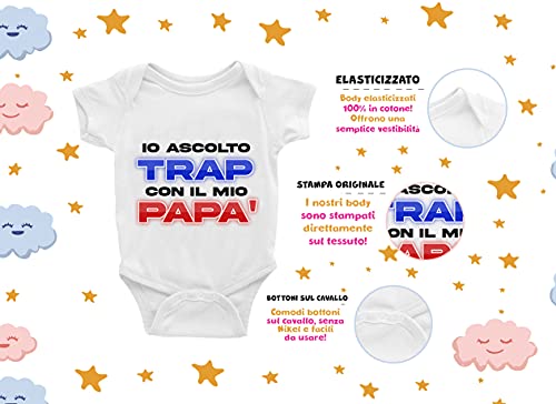 Puzzletee Body Neonato Trap - Io ascolto Trap insieme a mio Fratello - Body da Neonato simpatico - Idea Regalo Body Neonato - Body Neonato Musica - Bambino Trap - Idea Regalo - TAGLIA 0-6 MESI