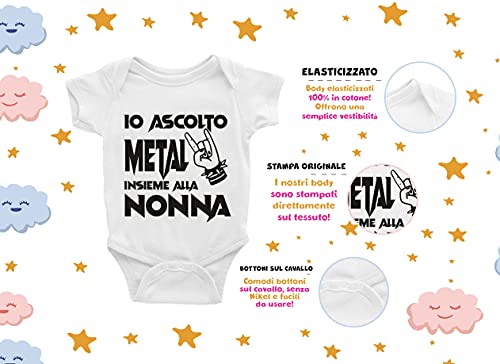 Puzzletee Body Neonato Metal - Io ascolto Metal insieme alla Nonna - Body da Neonato simpatico - Idea Regalo Body Neonato - Body Neonato Musica - Bambino Metal - Idea Regalo - TAGLIA 0-6 MESI