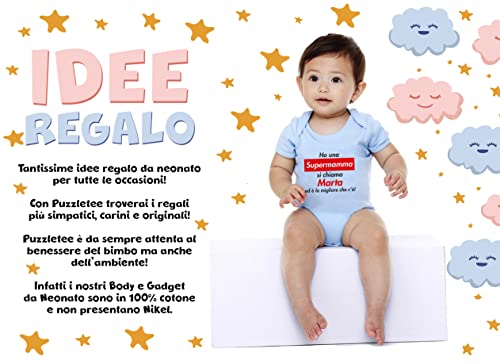 Puzzletee Body Neonato Personalizzabile - Ho una Super Mamma si Chiama [ PERSONALIZZA NOME ] - Miglior Mamma - Festa della Mamma - Neonato - Body Neonato - Idea Regalo