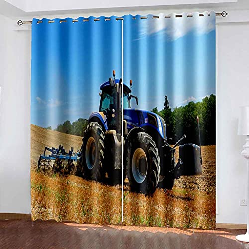 PVMLVM Tende Oscuranti Cameretta Bambini Moderne Trattore Blu 3D Stampa Tenda Isolante Per Interni Soggiorno Camera Da Letto Bagno Balcone Finestra 2 Pannelli Con Occhielli 280x260cm