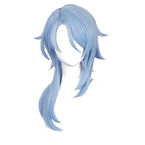 PWEINCY Parrucca blu con separazione laterale a strati per donna Parrucche sintetiche per cosplay Kamisato Ayato Halloween