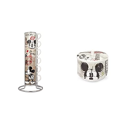 Egan Pwm02I/6Xy Set 6 Tazze Caffe Inpilabili In The City + Metalrack, 80 Ml, Diametro 6 Cm, Porcellana, Multicolore & Pwm41/Xy Zuccheriera, Modello In The City, Porcellana, Multicolore