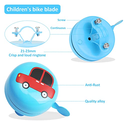 Materiale di Alta Qualità - questo campanello per bici per bambini è realizzato in lega di alta qualità, antiruggine, anticorrosione, durevole, con una lunga durata. La vernice di alta qualità può anche prevenire la ruggine e l'invecchiamento del campanello della bicicletta. È un ottimo accessorio per biciclette per bambini