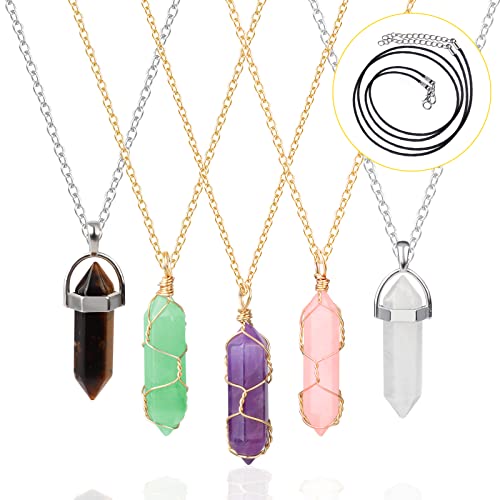 【Pendenti per collana di cristallo alla moda e alla moda】- Stai cercando una collana elegante che si abbini al tuo abbigliamento quotidiano? Guarda qui, non è necessario pagare costosi per gioielli con diamanti, questi pendenti in cristallo naturale con pilastro esagonale possono aiutarti. Hanno 5 ciondoli di colore diverso in design 2style, puoi cambiare diversi ciondoli ogni giorno, molto adatti per l'uso quotidiano, farti sembrare più alla moda ed elegante.