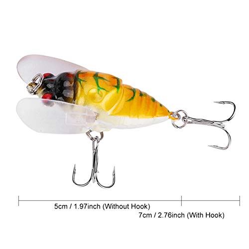 【FUNZIONE DI SIMULAZIONE】 Questa esca d'acqua dolce per insetto cicala simula l'aspetto della cicala e questa performance rende questa esca d'acqua dolce per insetto cicala uno strumento speciale per la cattura dei pesci.