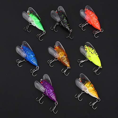 【SODDISFARE DIVERSE ESIGENZE】 Questa esca d'acqua dolce per insetti cicala ha un set disponibile in 8 colori, in grado di soddisfare le tue diverse esigenze. Questa esca d'acqua dolce per insetti cicala è ottima per gli amanti della pesca.