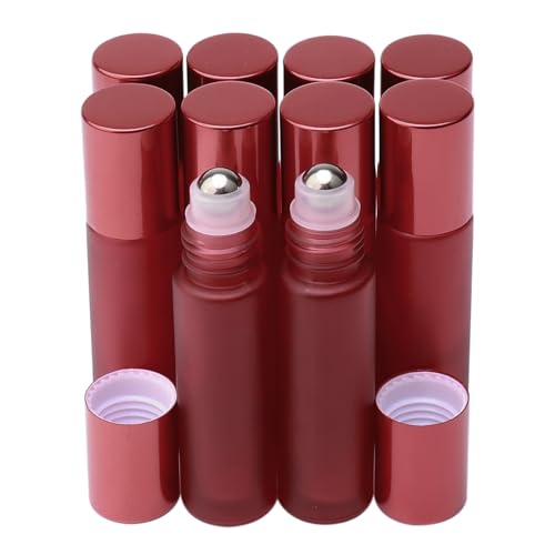 Pxyelec Bottiglie vuote per olio essenziale, 10 ml, in vetro roll-on con sfere in acciaio inox, confezione da 10, colore: rosso