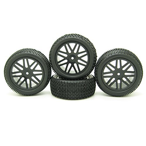 Pxyelec RC 1:10 Off-Road Buggy Gomma Pneumatico e Cerchio Cerchio HEX 12mm Nero con Inserti in Schiuma Confezione da 4