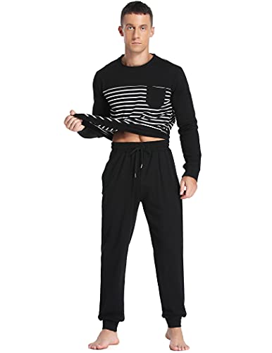 【Ottimo Tessuto】Girocollo & Strisce & Moda Pigiama da uomo in Cotone di alta qualità, molto confortevole, leggero, traspirante e molto morbido sulla pelle,ti fanno sentire fresco e comodo nelle notti calde.