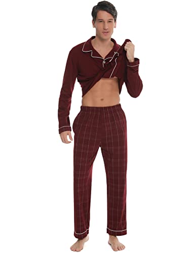 【Abbigliamento da notte classico alla moda 】Il Pigiama Uomo è un top con abbottonatura a maniche lunghe con tasca sul petto,risvolto a tacca dentellato con finiture a contrasto che aggiungono riflessi ai vestiti e li rendono più alla moda e nobili.Il pantalone del pigiama è decorato con un vecchio motivo a quadri classico con elastico in vita e due tasche. Sono squisitamente realizzati e tagliati con abilità che è il pigiama classico e alla moda che ti meriti.