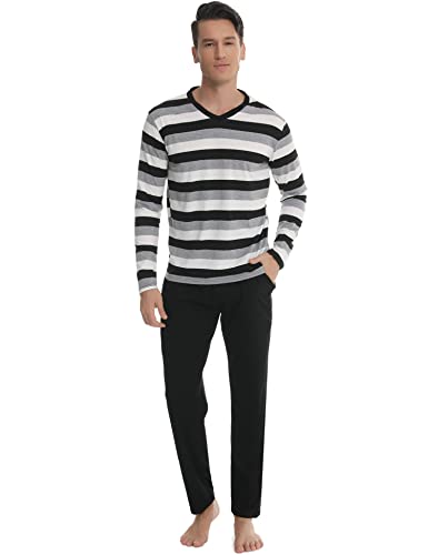 【Ottimo Tessuto Pigiama Uomo】Pigiama uomo in cotone lungo Invernale,leggero e confortevole.L'alta qualità dei tessuti utilizzati è indispensabile per assicurarti morbidezza e relax durante tutta la notte. Dettagli grintosi e accattivanti, linea preziosa e moderna e ancora sportiva per un look casual contemporaneo, per vivere al meglio anche i momenti di relax con lo stile Invernale.