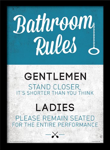 Pyramid International FP10988P-PL - Stampa artistica con cornice con scritta Bathroom Rules, multicolore