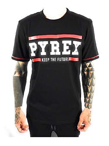 PYREX Basico T-Shirt Uomo 19IPB40376 Nero-Rosso Small