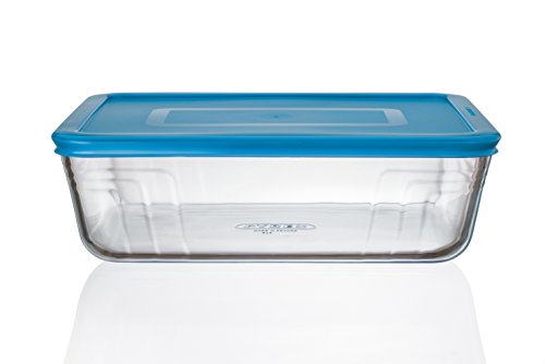 Pyrex Cook N Fresh - Piatto di stoccaggio rettangolare con coperchio in plastica blu medio - 2.6l (dimensioni: L25 x L x P x H 8 cm)