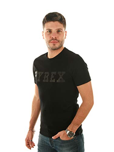 Pyrex T-Shirt Uomo Nero Girocollo Stampa con Logo Tono su Tono L