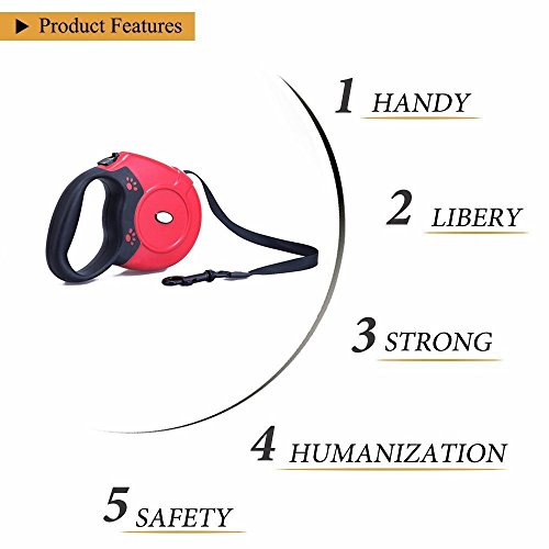 Pyrus, guinzaglio retrattile di 5 m di larghezza, con pulsante di bloccaggio on/off e maniglia ergonomica, per piccoli e grandi cani