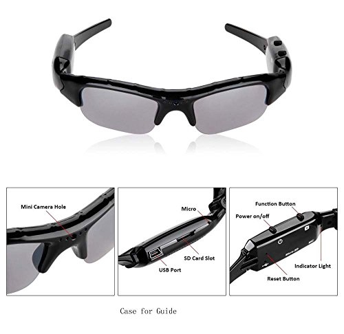 Occhiali da sole registratore video digitale Hidden Mini DVR.Fotocamera da 1.3 CMOS Pinhole Mega Pixel per registrazione video digitale. Batteria al litio ricaricabile 500 mA, fino a 5 ore di registrazione video. Microfono integrato e registrazione super-long