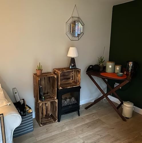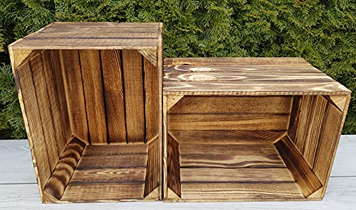 PYXIDAS Effetto Bruciato Cassette Legno- set di Portafrutta, dimensioni 40x29x25 cm - misura media, utilizzabile come contenitore o decorativo, resistente e pulito (Effetto Bruciato, 2)