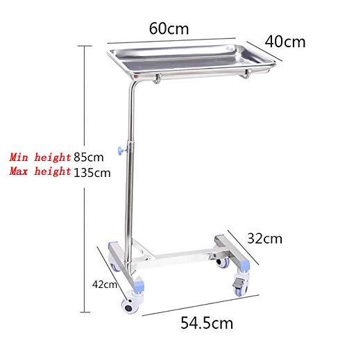 PYXZQW Vassoi per Procedure mediche Vassoio per Strumenti Supporto Regolabile, Medico, odontoiatrico, per Salone, per Tatuaggio, Carrello per Servizio Mobile, Altezza da 85 a 135 cm