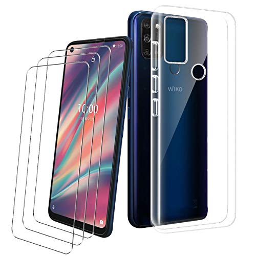 PZEMIN Cover per Wiko View5 Custodia + 3X Film di Vetro Temperato - Caso Silicone Trasparente Protettiva TPU Bumper Leggero Morbido Shell Case (6.55", Clear)