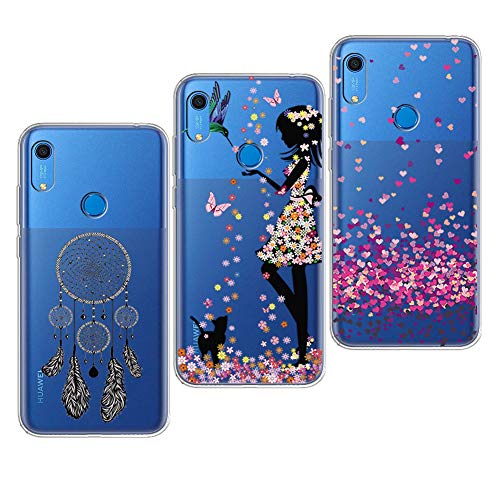 PZEMIN 3 Pezzi per Huawei Y6S Custodia Trasparente Silicone Caso Gomma TPU Bumper Clear Protettiva Morbido Guscio Cover Shell, Dream Catcher + Bella Ragazza + Amore