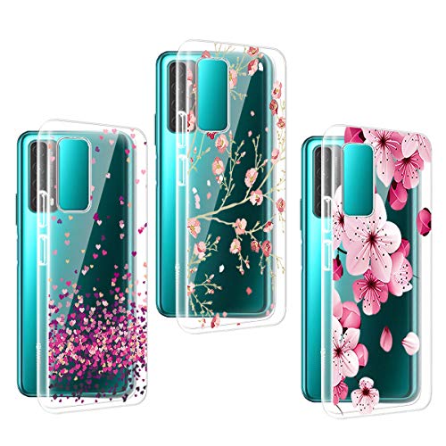 PZEMIN 3 Pezzi per Huawei P Smart 2021 Custodia Trasparente Silicone Caso Gomma TPU Bumper Clear Protettiva Morbido Guscio Cover Shell, WM84+WM85+WM113