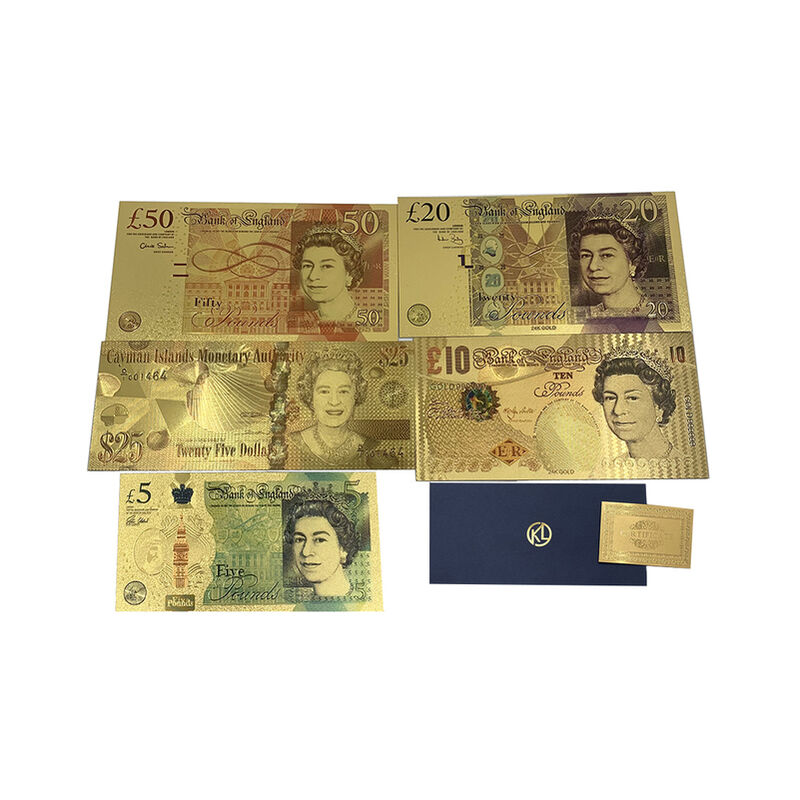 5 pz/lotto UK banconote in oro colorato 5 10 20 25 banconote da 50 libbre in carta di plastica finta placcata in oro per la raccolta,5pcs set