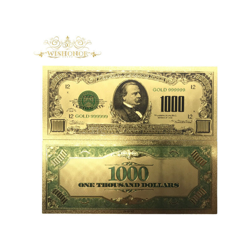 Nome:10 pz/lotto 1899 Anni di Colore USA Delle Banconote In Oro 1000 Dollaro Banconote Replica Soldi Fatture Placcato Oro Regalo di Affari di Raccolta Qualità: 100% di Alta qualità lamina d'oro puro Materiale: stagnola di Oro + Pet 1. Your Soddisfacente è il nostro più grande felicità, Quindi, le vostre risposte è estremamente importante per noi. 2. If siete soddisfatto con i nostri prodotti, si prega di lasciare us 5 inizio le risposte. 3. Pls in contatto con noi prima di lasciare qualsiasi negaive di risposte neutre. Faremo del nostro meglio per risolvere il problema. FAQ 1. Payment:Aliexpress, T/T(30usd tassa d'istruzione), Western Union,paypal 4% 2.International Espresso: DHL,TNT,FEDEX, posta di aria dell'alberino della cina, e-pacchetto, porta a porta di servizio. 3. Politica di ritorno: Se non siete soddisfatto con il vostro acquisto, è possibile scambiare l'articolo. L'articolo restituito deve essere nuovo con la modifica e nello stato originale. Il compratore deve mettersi in