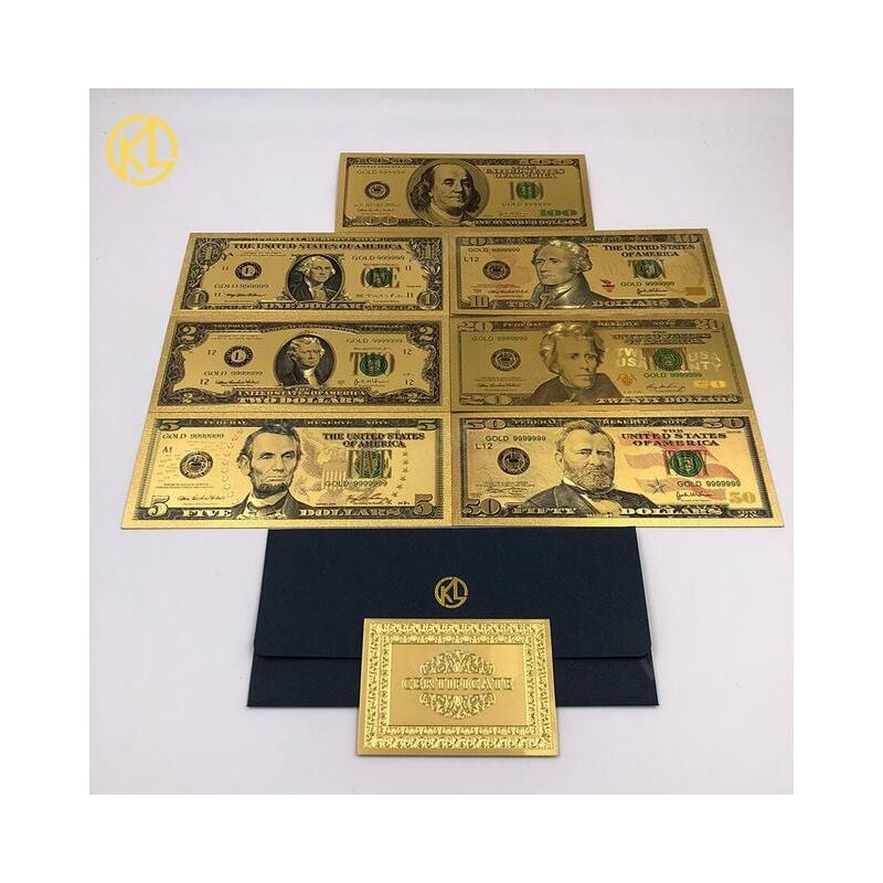 7 pz/set America Money Set 1 2 5 10 20 50 banconote in oro da 100 dollari nel 99.9% denaro falso placcato oro per la raccolta,7pcs