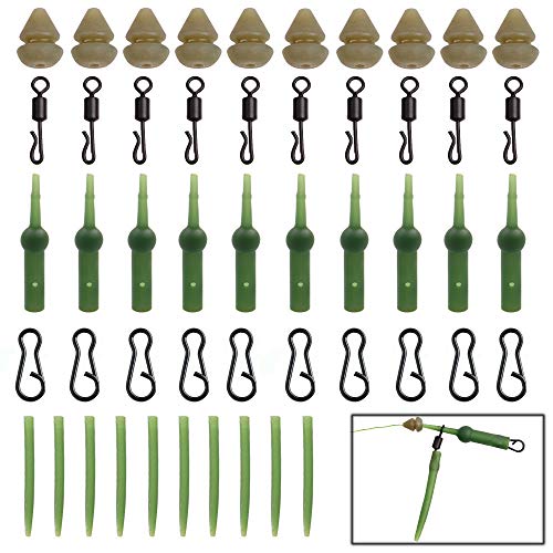 50 accessori per la pesca alla carpa, contiene elicottero a coda affusolata Chod Rig Buffer Anti groviglio maniche girevoli leader clip rig Rigs.