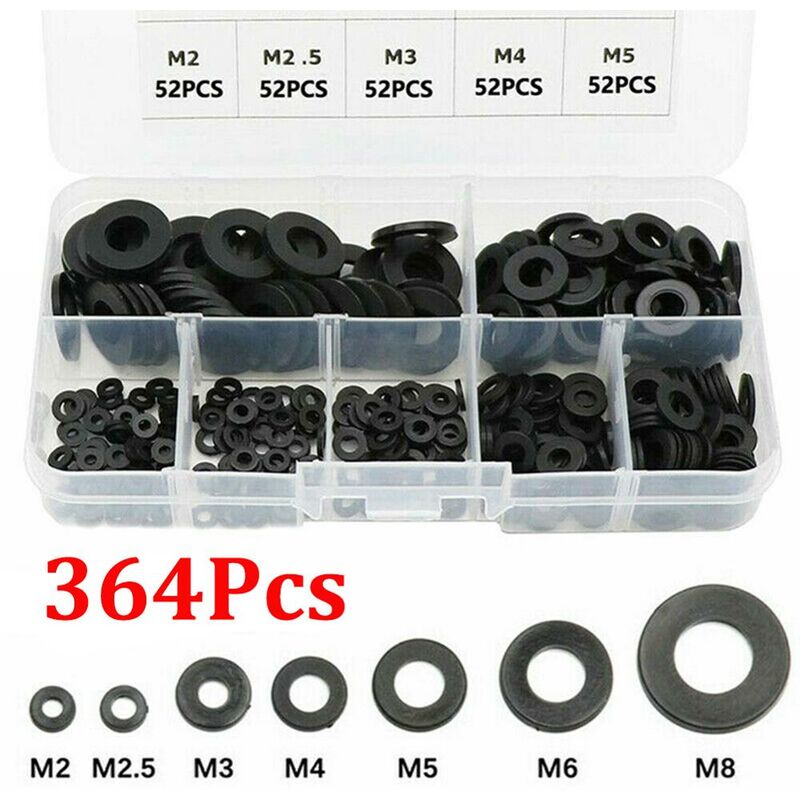 364 pz/set In Nylon Nero di Gomma Anello Piatto di Riparazione Guarnizione Rondella Per Il Sistema Metrico M2-M8 Caratteristiche:* 1.100% nuovo di zecca e di alta qualità* 2. Viene fornito con una scatola di plastica per la conservazione e di smistamento.* 3. Realizzato in materiale di nylon, durevole e resistente alla corrosione.* 4. Questi piatto rondelle di fornire un supporto di superficie che può essere utilizzato per distribuire di fissaggio carichi e hanno resistenza all'usura.* 5. Perfetto per i collegamenti elettrici tra apparecchi per uso domestico e commerciale elettrodomestici, automobilistico e applicazioni marine, in cui il potere di alimentazione ha una filettato/bullone tipo di connessione.Specifica:* Materiale: Nylon* Colore: Nero (Come esposizione delle immagini)* Rondella Formato Adatto: M2, M2.5, M3, M4, M5, M6, m8 Metrico Bulloni/Viti* Quantità: 364pcs (52pcs per formato)Cornici E Articoli Da Esposizione Contenuto:364 * nero Nylon Piatto Rondelle Con La