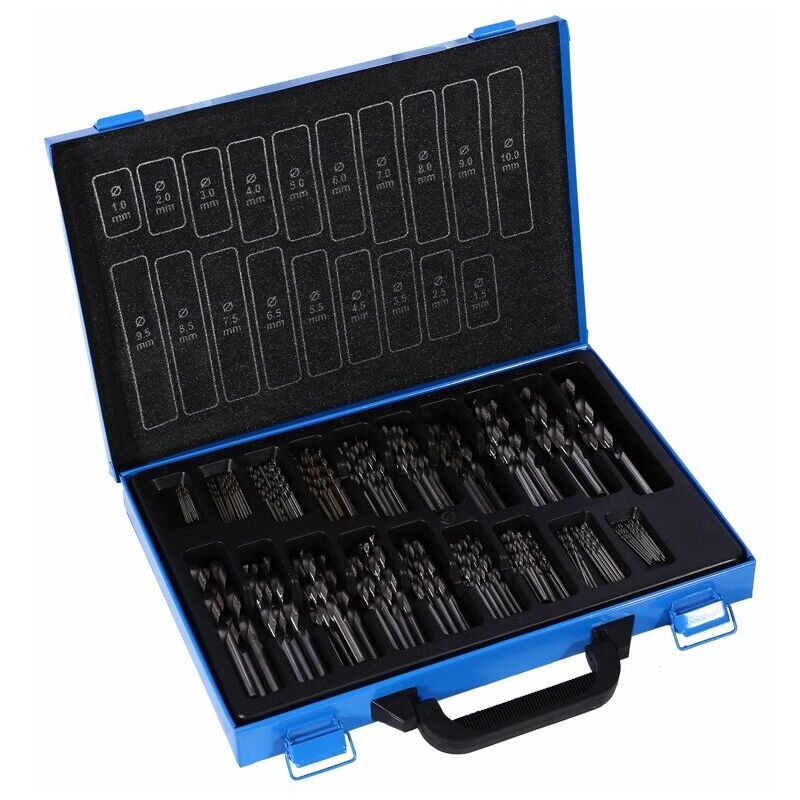 Caratteristiche: -Le punte sono realizzate in acciaio ad alta velocità, elevata durezza e durata. -Messa a terra di precisione per tagli netti e fissaggio più facile. -Set completo di punte da trapano da 170 pezzi delle punte da trapano più popolari. -Ideale per la maggior parte dei lavori di foratura e materiali come alluminio, ferro, legno, plastica. -Consegnato in una custodia robusta con una comoda maniglia. Caratteristiche: -Materiale: HSS4241 -Diametro: 1, 1.5, 2, 2.5, 3, 3.5, 4, 4.5, 5, 5.5, 6, 6.5, 7, 7.5, 8, 8.5, 9, 9.5 e amp;
