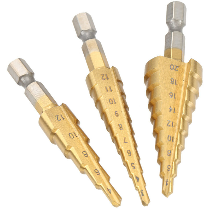Queste punte a gradino sono molto adatte per praticare fori in una varietà di materiali tra cui acciaio, ottone, legno, plastica e altro ancora. Specifiche: Materiale: acciaio ad alta velocità 4241 Trattamento superficie: rivestimento in titanio Diametro gambo: 6,35 mm (gambo esagonale) < br /> Peso dell'articolo: ca. 83 g/2,93 once Peso della confezione: ca. 84 g / 2,96 once Dimensioni del pacchetto: ca. 9,5 * 6 * 1,5 cm / 3,74 * 2,36 * 0,59 pollici Lista dei pacchetti: 3 * Passaggio Punta da trapano