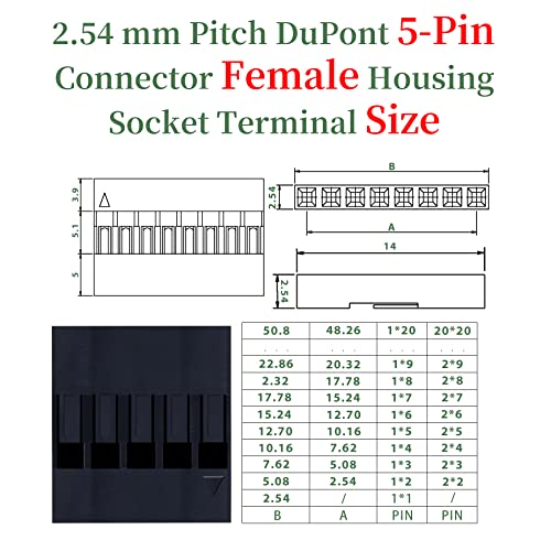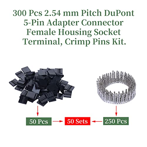 Pzsmocn 50 Sets Dupont 2,54 mm Passo 5 Pin Femmina Adattatore Connettore Cavo Accessori. 300 Pezzi 2,54 mm Pitch Dupont 5 Pin Adattatore Femmina Terminale Presa a Conchiglia, Kit Pin a Crimpare.