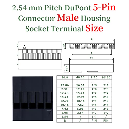 Pzsmocn 50 Sets Dupont 2,54 mm Passo 5 Pin Maschio Adattatore Connettore Cavo Accessori. 300 Pezzi 2,54 mm Pitch Dupont 5 Pin Adattatore Maschio Terminale Presa a Conchiglia, Kit Pin a Crimpare.