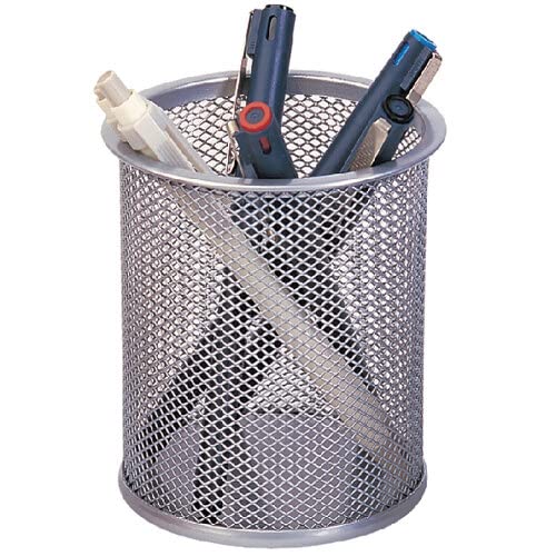Q-Connect, Vaso matita rotonda, concezione de maille, colore argento