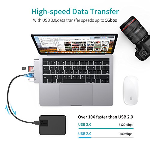 QacQoc [PROMOZIONE HUB USB C,HUB Thunderbolt 3 40Gbs,con 1 Porta HDMI 4K, 2 Lettori di Scheda SD & Micro SD,2 Porte USB-C, 2 Porte USB 3.0, Compatibile con 13"/15" Apple MacBook (6-in-1-Grigio)