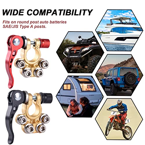 【DUREVOLE】: Realizzato in ottone e lega di alluminio, il nostro connettore del terminale della batteria ha un'ottima conduttività e resistenza alla corrosione, che garantisce prestazioni e durata eccezionali