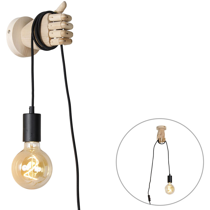 QAZQA Lampada da parete rurale in legno con nero - Mano Porta una lampada da parete rurale nella tua casa con la nostra mano. Questa lampada da parete è realizzata in legno ed è rifinita in un colore marrone. Come suggerisce il nome, la lampada ha la forma di una mano. Ha una profondità di 16,5 cm, un'altezza di 40 cm e una lunghezza di 10 cm. La piastra di montaggio ha una profondità di 2,5 cm e un diametro di 10 cm. Il cavo ha una lunghezza di 300 cm. La sorgente luminosa E27 richiesta non è ancora inclusa, ma può essere facilmente ordinata nel nostro negozio online. Rendila ancora più accogliente in casa con un dimmer esterno, perché questa lampada è dimmerabile (dimmer non incluso). Dai ai tuoi interni un tocco rurale con questa lampada da parete Hand! Portalampada: E27 . Max 1 x 40 W, 230 V Adatto a: Incandescente, Algogene, LED,Risparmio energetico Voltaggio: 220V/230V IP Classe di protezione: [IP20] A prova di polvere Funzioni extra: Regolabile: Dimmer escluso, Cavo e spina