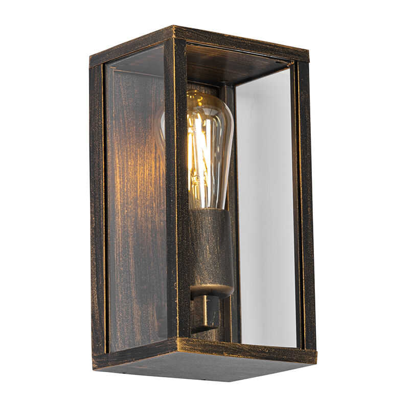 QAZQA Lampada da parete vintage oro antico 26 cm IP44 - Charlois Che bella aggiunta al tuo giardino è Charlois! Questa lampada da parete per esterni si adatta perfettamente allo stile industriale. La lampada da parete per esterni ha un colore oro antico ed è realizzata in alluminio con vetro. La lampada da parete per esterni è larga 14 cm, lunga 14 cm e alta 26 cm. Non dimenticare di ordinare separatamente una lampadina con attacco E27 (max. 40W). Non è inclusa. Con IP44, puoi posizionare la lampada all'aperto in aree riparate come contro casa o sotto una tettoia. Hai bisogno di meno luce? Charlois è dimmerabile, ma il dimmer non è incluso. Goditi la vita all'aria aperta fino a tardi con Charlois. Portalampada: E27 . Max 1 x 40 W, 230 V Adatto a: LED Voltaggio: 220V/230V IP Classe di protezione: IP44 Funzioni extra: Regolabile: Dimmer escluso,No, senza cavo e spina Lampadine exclusiva Il QAZQA Lampada da parete vintage oro antico 26 cm IP44 - Charlois è Oro. Gli spazi abitativi adatti