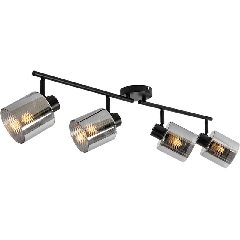 QAZQA Faretto da soffitto nero con vetro fumé orientabile a 4 luci - Laura Ecco Laura, l'imponente faretto da soffitto con quattro punti luce orientabili. L'elegante struttura nera è un'aggiunta di stile a qualsiasi interno, soprattutto in un ambiente Art Déco. I punti luce sono circondati da vetro fumé a coste, che aggiunge un tocco sottile e contemporaneo. Con una lunghezza di 111 cm e un'altezza di 20 cm, Laura non solo offre una luminosità sufficiente, ma anche un elemento di design accattivante. Le lampadine con attacco E27 devono essere acquistate separatamente. Laura è una scelta versatile che si adatta senza sforzo al tuo spazio elegante. Portalampada: E27 . Max 4 x 40 W, 230 V Adatto a: LED Voltaggio: 220V/230V IP Classe di protezione: [IP20] A prova di polvere Funzioni extra: Regolabile: Dimmer escluso,No, senza cavo e spina Lampadine exclusiva Il QAZQA Faretto da soffitto nero con vetro fumé orientabile a 4 luci - Laura è Grigio. Gli spazi abitativi adatti per questa