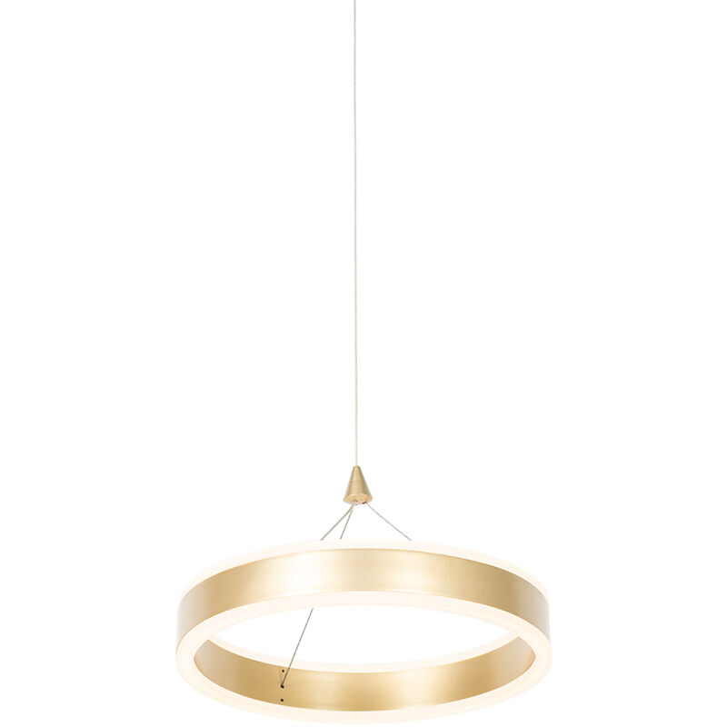 QAZQA Lampada a sospensione in ottone 30 cm con LED dimmerabile a 3 fasi - Lyani A volte una lampada non deve essere molto complicata per adattarsi perfettamente ai tuoi interni. Questa lampada a sospensione in ottone realizzata in alluminio con acciaio e plastica lo dimostra ancora una volta. Lyani ha un diametro di 30 cm e un'altezza di 144 cm. La piastra di montaggio ha un diametro di 13 cm e un'altezza di 5 cm. La lampada viene fornita con un paralume e ha un diametro di 30 cm e un'altezza di 4,8 cm. La lampada ha una luce bianca calda e quindi fa una bella figura, ad esempio, nel soggiorno o nell'ingresso. Lyania è anche dimmerabile in tre passaggi da alta a bassa luminosità. La lampada è fornita con LED non sostituibile. Scaricalo ora e goditi rapidamente la tua nuova acquisizione! Portalampada: (non sostituibile) LED . Max 1 x 12 W, 230 V Adatto a: LED Voltaggio: 220V/230V IP Classe di protezione: [IP20] A prova di polvere Funzioni extra: Regolabile: Dimmer incluso,No, senza