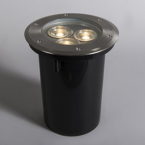 QAZQA tribus gl - Faretto da incasso da terra Moderno - 3 luce - Ø 200 mm - Acciaio - Design - Illuminazione esterna