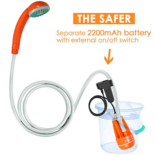 ▶ 100% IMPERMEABILE: con cavo di ricarica USB, tubo flessibile, soffione, ventosa e attacco gancio con getto doccia resistente all'acqua, la migliore attrezzatura da campeggio si può pensare di lavare si può usare come lavello per il campeggio, l'uso perfetto per la tenda doccia esterna o camper