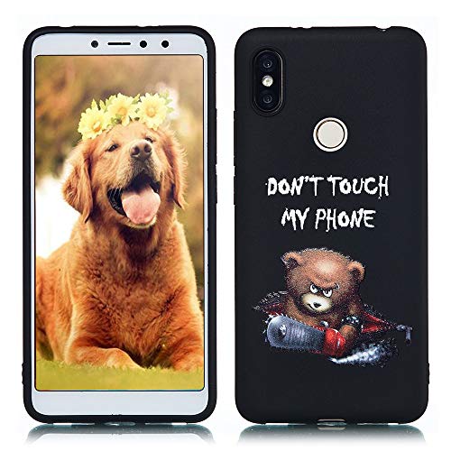 QC-EMART Cover per Xiaomi Redmi S2 Custodia in Silicone Protettiva Posteriore Morbido Antiurto Nero Black Modello Carino Gomma TPU Cuscino Back Bumper Cellulari Guscio Custodie Orso