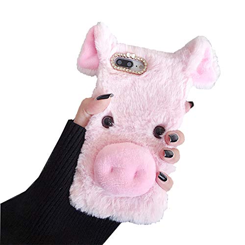 QC-EMART Custodia per iPhone 5 SE 5S Cover Silicone Morbido TPU Furry Fluffy Rosa Piccoli Pig Porcellini Posteriore Morbida Bumper Pelliccia Soffice Protettivo Covers Custodie Accessori