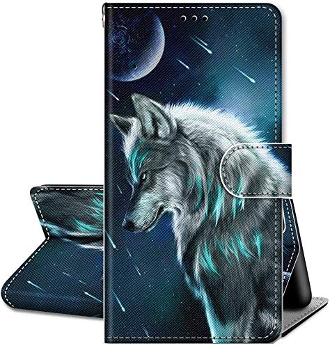QC-EMART per iPhone SE 2020 Cover a Libro, Blu Lupo Custodia a Portafoglio con Tasche TPU Antiurto Piegata Supporto Fibbia Magnetica Protettiva Flip Cover per iPhone SE 2020